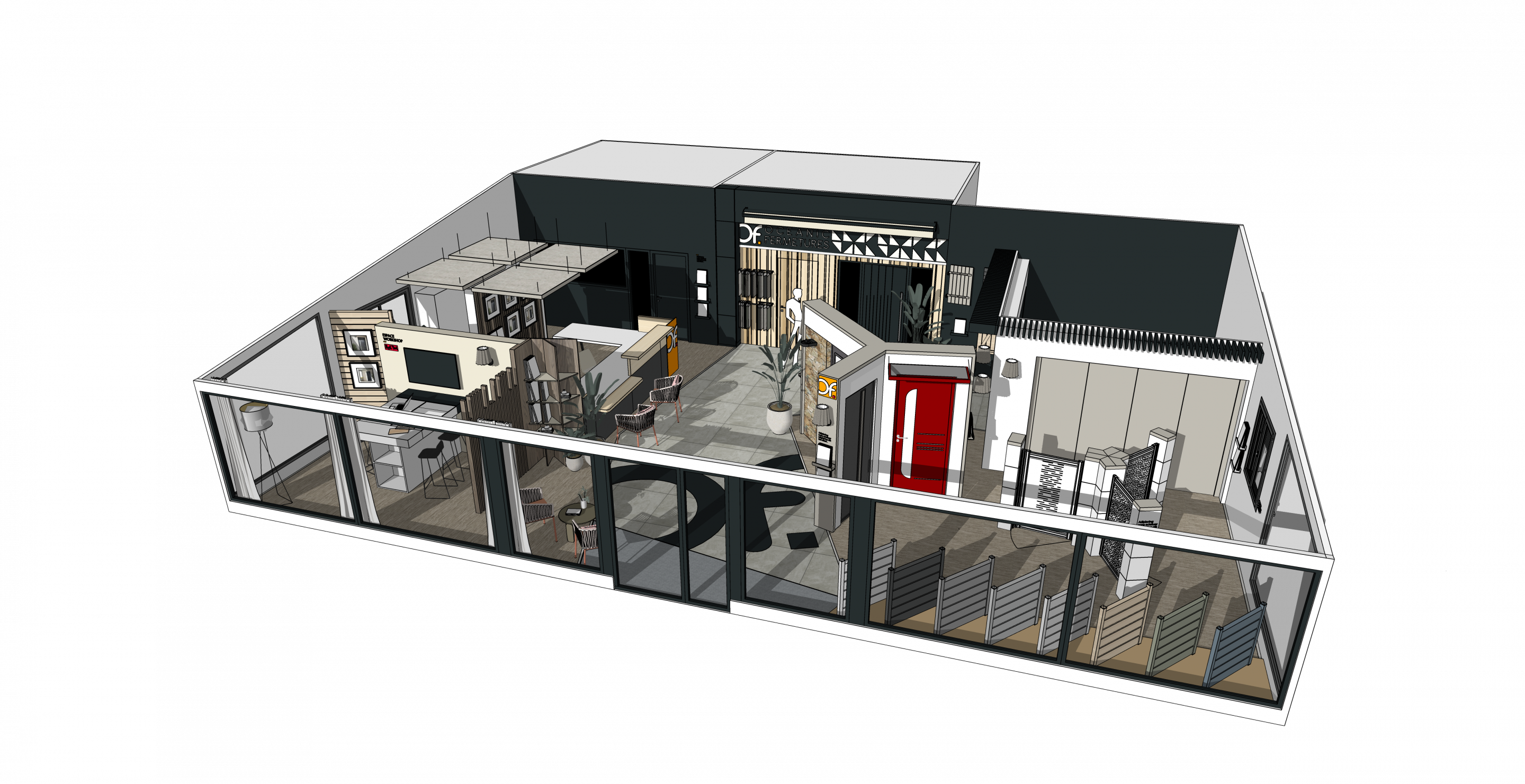 Aménagement et design intérieur d’un espace de 300 m² dédié aux portails,